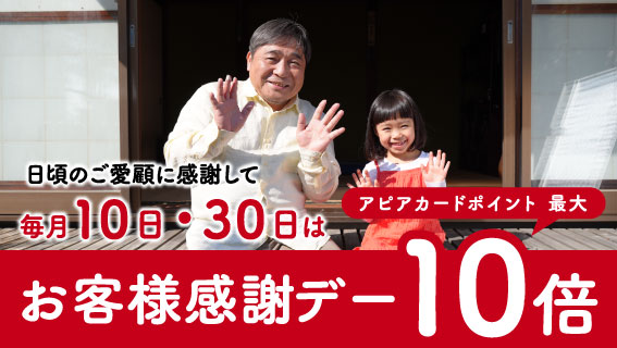偶数月の15日は、シニア割60(ロクまる)デーを開催いたしております! 60歳以上のアピアカード会員様のお得な一日! ポイントサービスな...