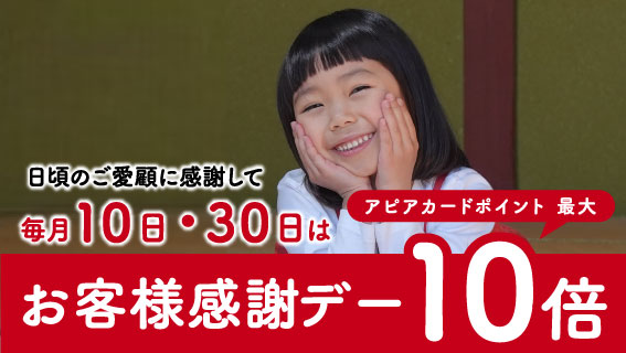 毎週火曜日は、アピアカード対象商品1,000円(税抜)以上の購入で、アピアカードポイントが最大500ポイントもらえる、スピードくじ抽選会を開...